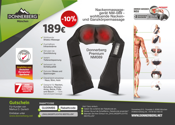 Massagegerät in den Warenkorb legen und Gutscheincode GU20MBS eingeben.